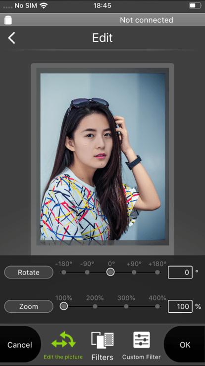 5.选择图像后,按“编辑”按钮即可编缉图像(放大·缩小、旋转、过滤器、模板)。